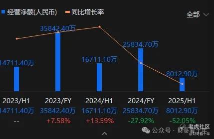 2025年上半年经营现金流同比腰斩52%,仅剩0.80亿元。结合2024年净利润1.09亿元计算,经营现金流与净利润的比率远低于健康水平,反映公司盈利质量下降和营运资金管理压力增大