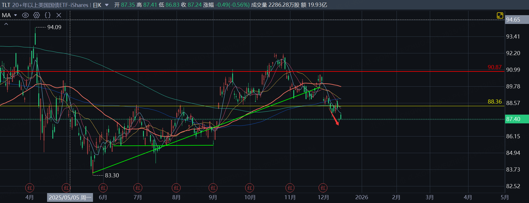 长期美债ETF也出现了大跌,目前在技术上看,似乎并没有支撑位: