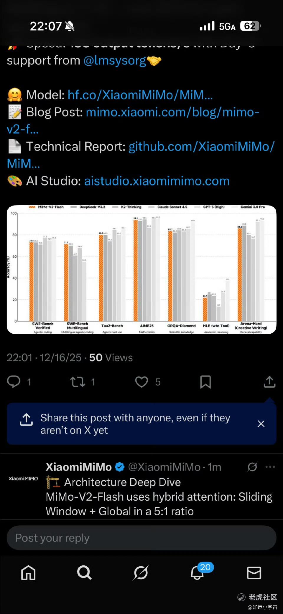 $小米集团-W(01810)$ 小米刚刚发布了最新的MiMo大模型,划重点:『媲美 DeepSeek-V3.2』