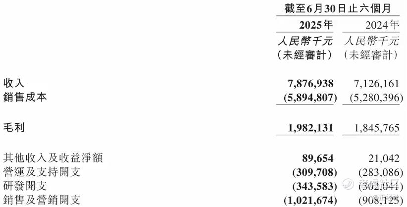 到了2025年上半年,销售及营销开支为10.21亿元,上年同期为9.08亿元;研发开支为3.43亿元,上年同期为3亿元。