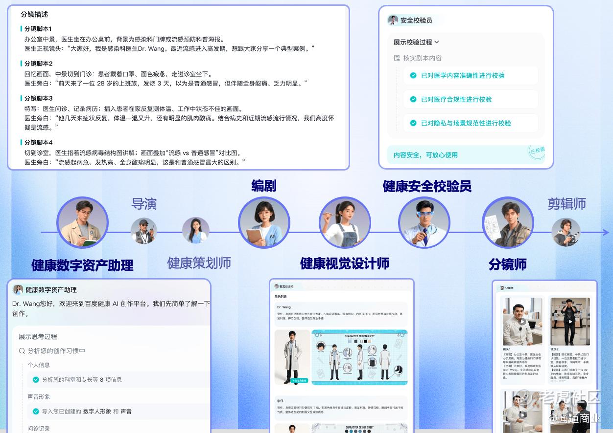 “全网超4亿用户日均消费28分钟健康内容,但80%从业者想创作却缺精力、缺技能,单条视频平均耗时10小时。”翟悦指出,Dr.Flow通过“专业可控、智能辅助、便捷操作、一站式经营”四大核心能力破解痛点:AI创作天团覆盖选题策划、脚本撰写、合规校验、视频制作全流程,医生仅需对话即可指挥操作,10分钟完成一条视频;个人健康知识库沉淀,以及10余种专属医患角色库和超150万条合规医学素材库,保障内容专业且风格统一;平台还支持一键全网分发与多重收益变现,让从业者聚焦专业内容打磨。