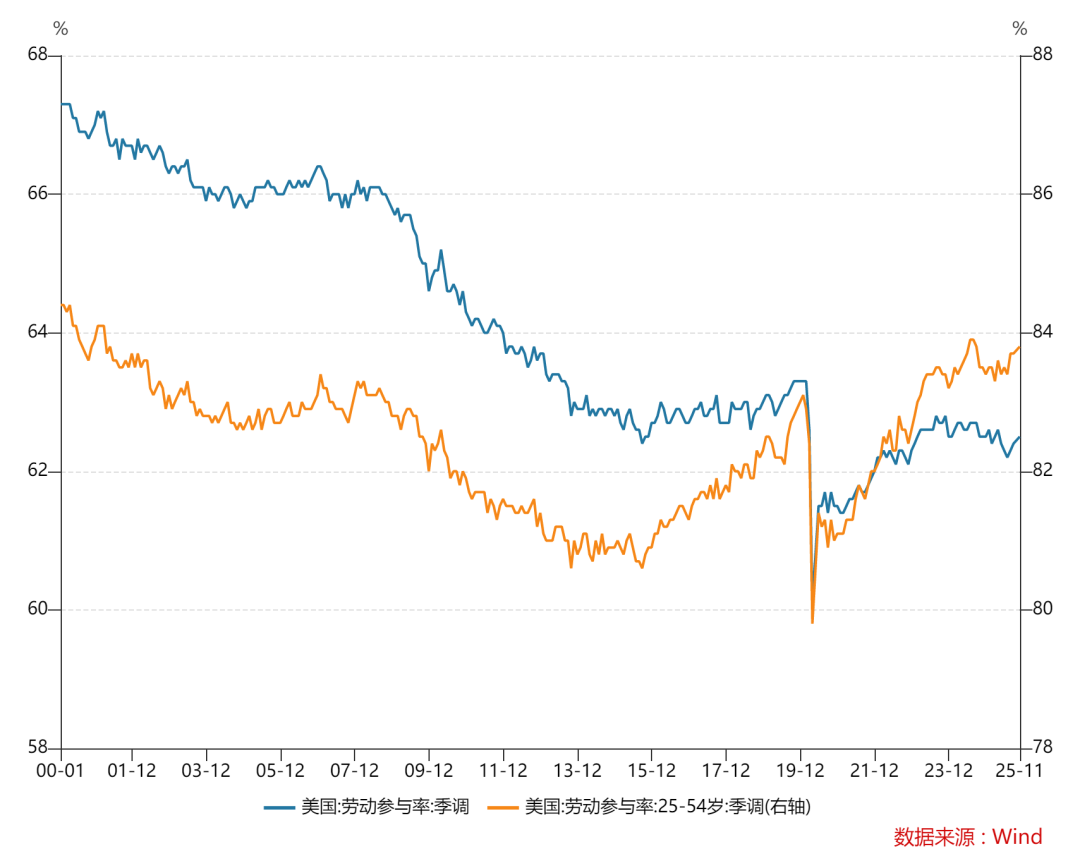 劳动参与率小幅上升至62.5%,25~54岁的黄金年龄段劳动参与率上升到83.8%;