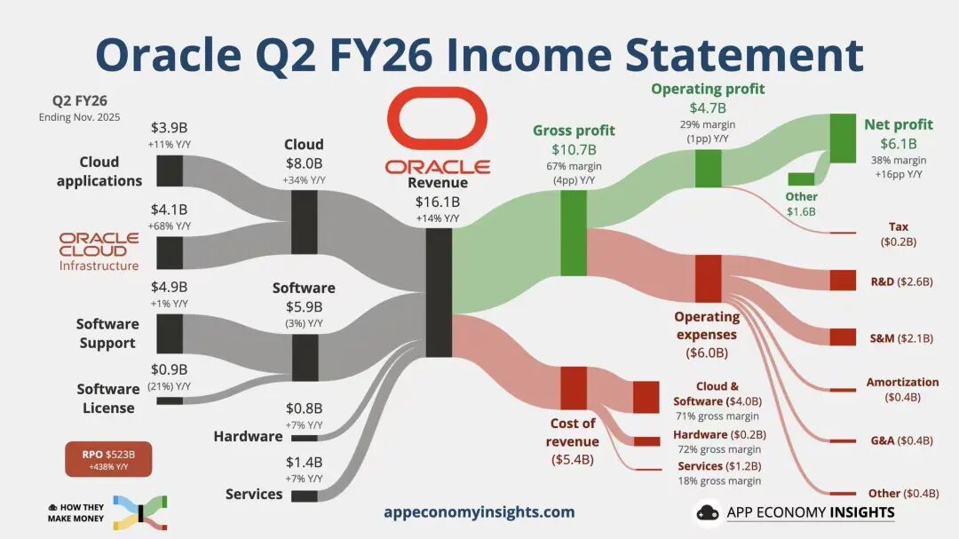 具体来看,甲骨文26FYQ2财报主要财务数据如下: