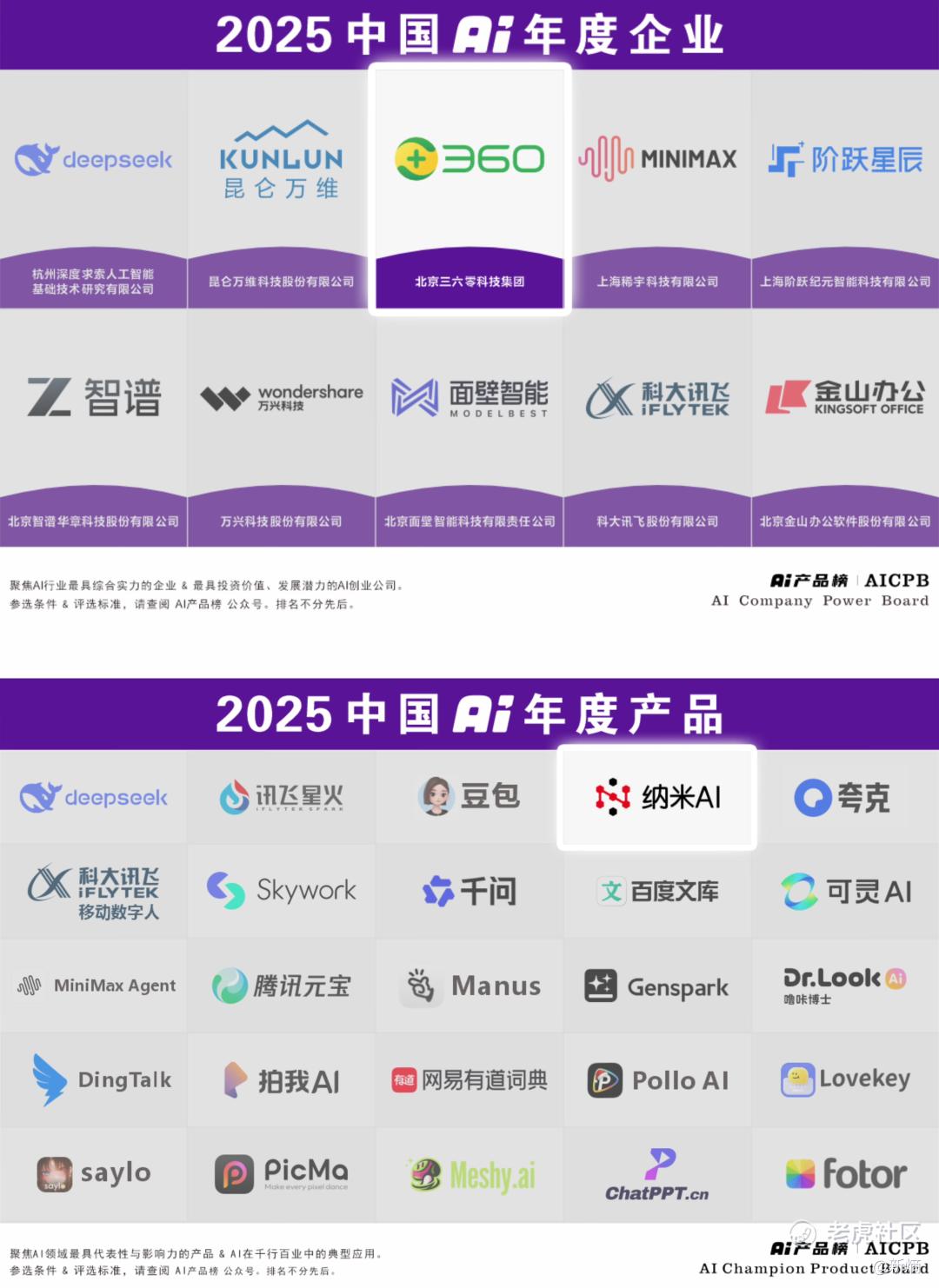 在最新发布的“2025中国AI年度榜单”中,360集团及其旗下的纳米AI双双上榜。一个成功跻身年度企业榜单,一个斩获年度产品荣誉。