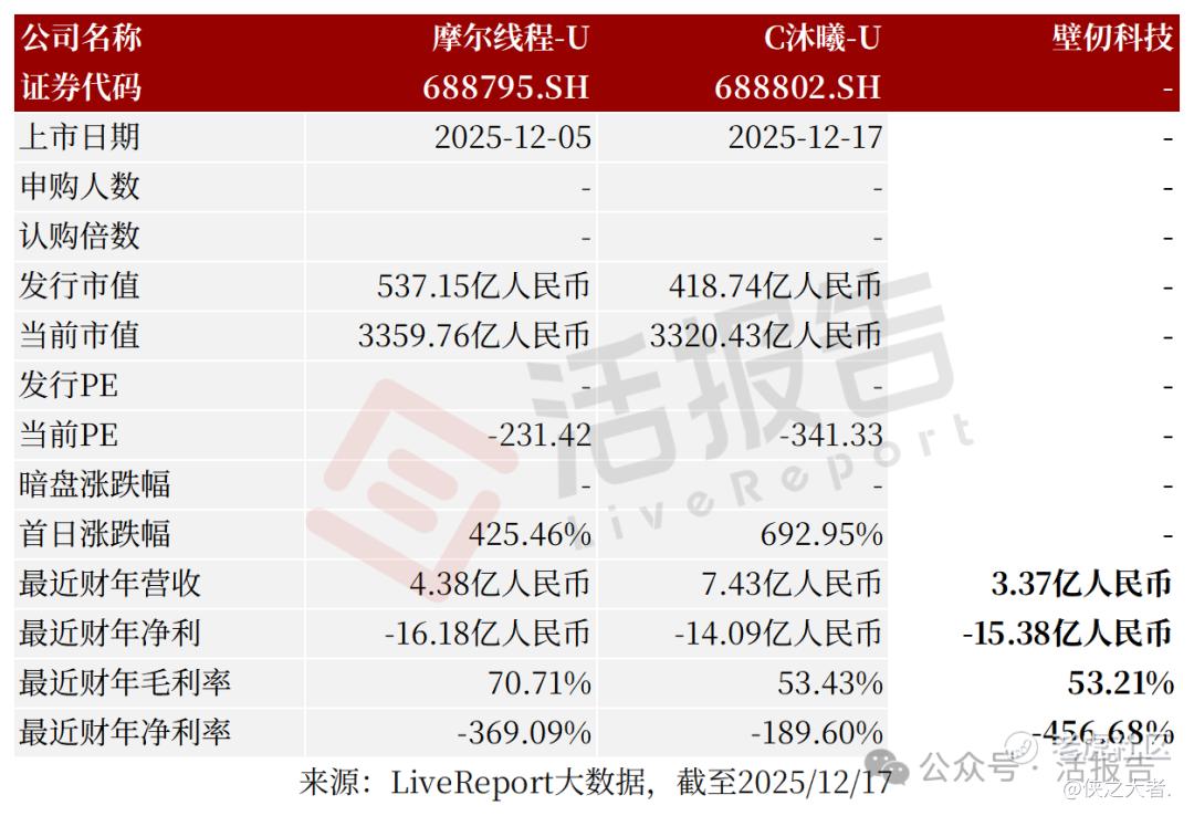 同行业IPO可比公司:摩尔线程、沐曦股份