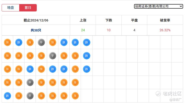 招商证券国际历史上作为保荐人共参与38个项目,暗盘23家公司上涨,7家公司下跌,8家公司平盘,破发率为18.42%;上市首日24家公司上涨,10家公司下跌,4家公司平盘,破发率26.32%。保荐人在暗盘破发率相对较低。
