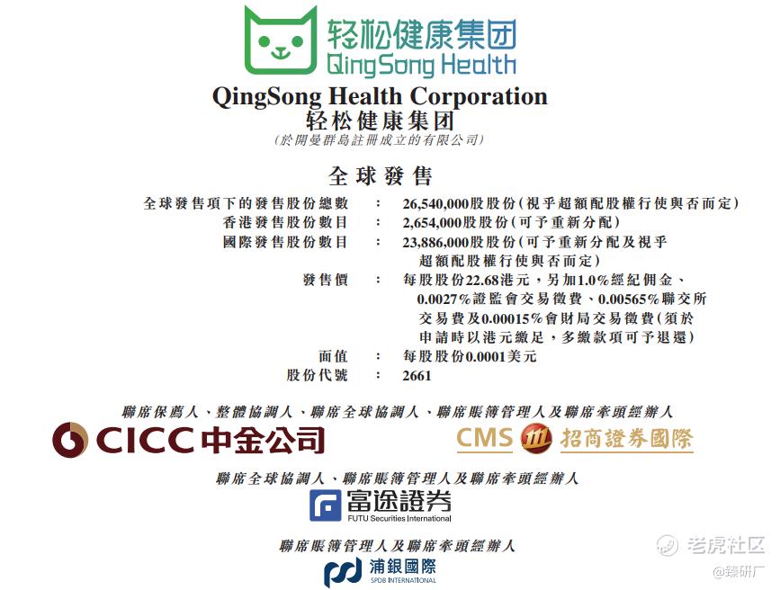 从本次的发行架构上看,本次发行由中金公司、招商证券国际联席保荐,拥有绿鞋与基石,采用机制B分配机制,无回拨机制,(公司按发售价22.68港元)公开发售2,654,000股,总计约1.3万手,入场费为4581.75港元,基石投资者共认购超1.09亿港元,约占根据全球发售发行的发售股份的18.09%,该基石投资者是由东融一号与横琴产业投资基金控股,横琴产业投资基金历史作为基石的项目有健康之路等项目。本次发行流通市值为46.81亿(按发行价22.68港元计算,并未行使超额配售权),当前进入港股通的门槛为(93.28亿港元),上市发行后,股价预计翻倍可以进入港股通。