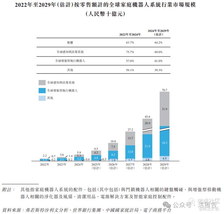根据弗若斯特沙利文(Frost & Sullivan)的报告,全球家庭机器人系统行业的市场规模从2022年的人民币22亿元增长至2024年的人民币59亿元,期间复合年增长率约为63.7%。预计2029年市场规模将达到人民币707亿元,2024年至2029年的复合年增长率约为64.2%。
