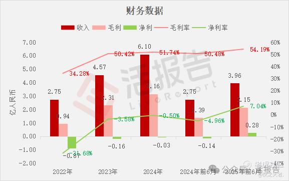 收入分别约为人民币2.75亿、4.57亿、6.10亿、2.75亿、3.96亿,2025年前6月同比+44.10%;