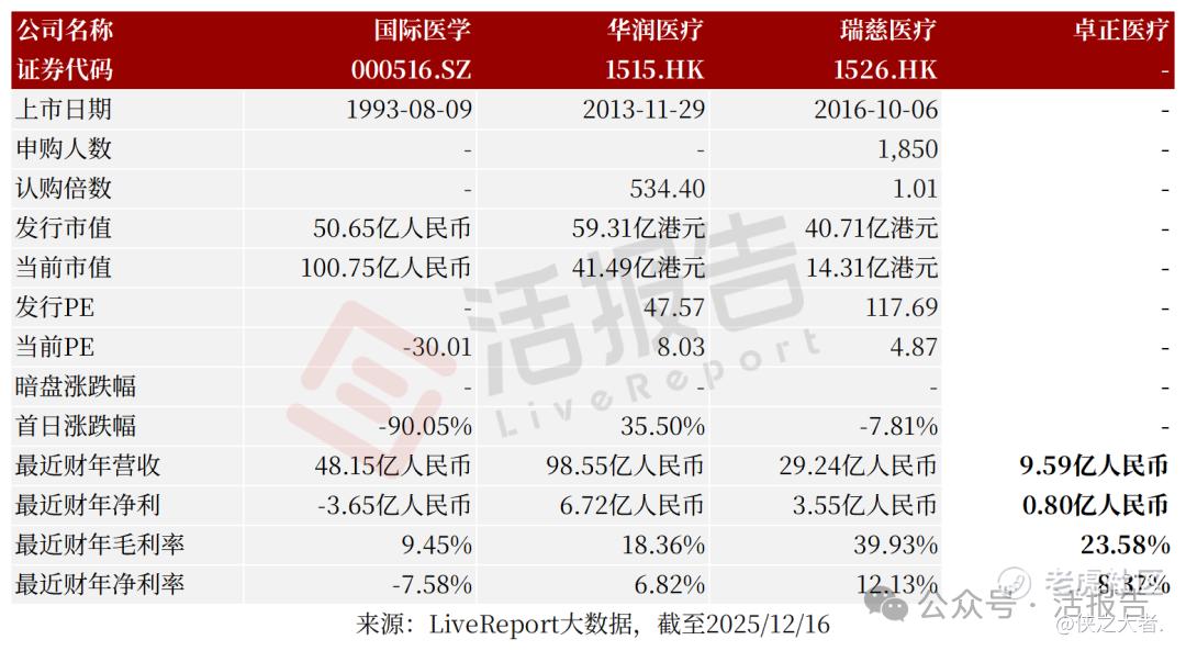 同行业IPO可比公司:国际医学、华润医疗、瑞慈医疗