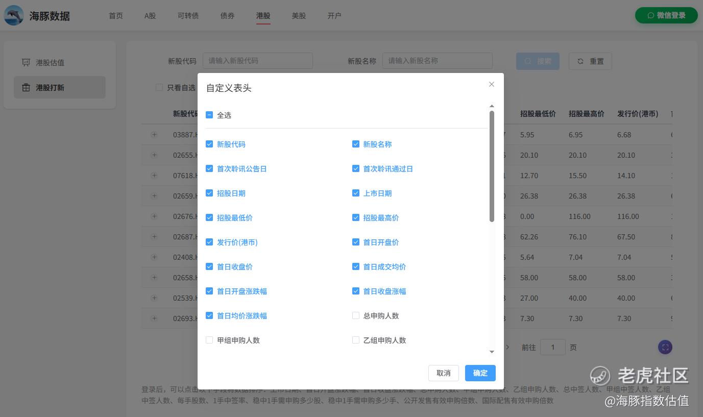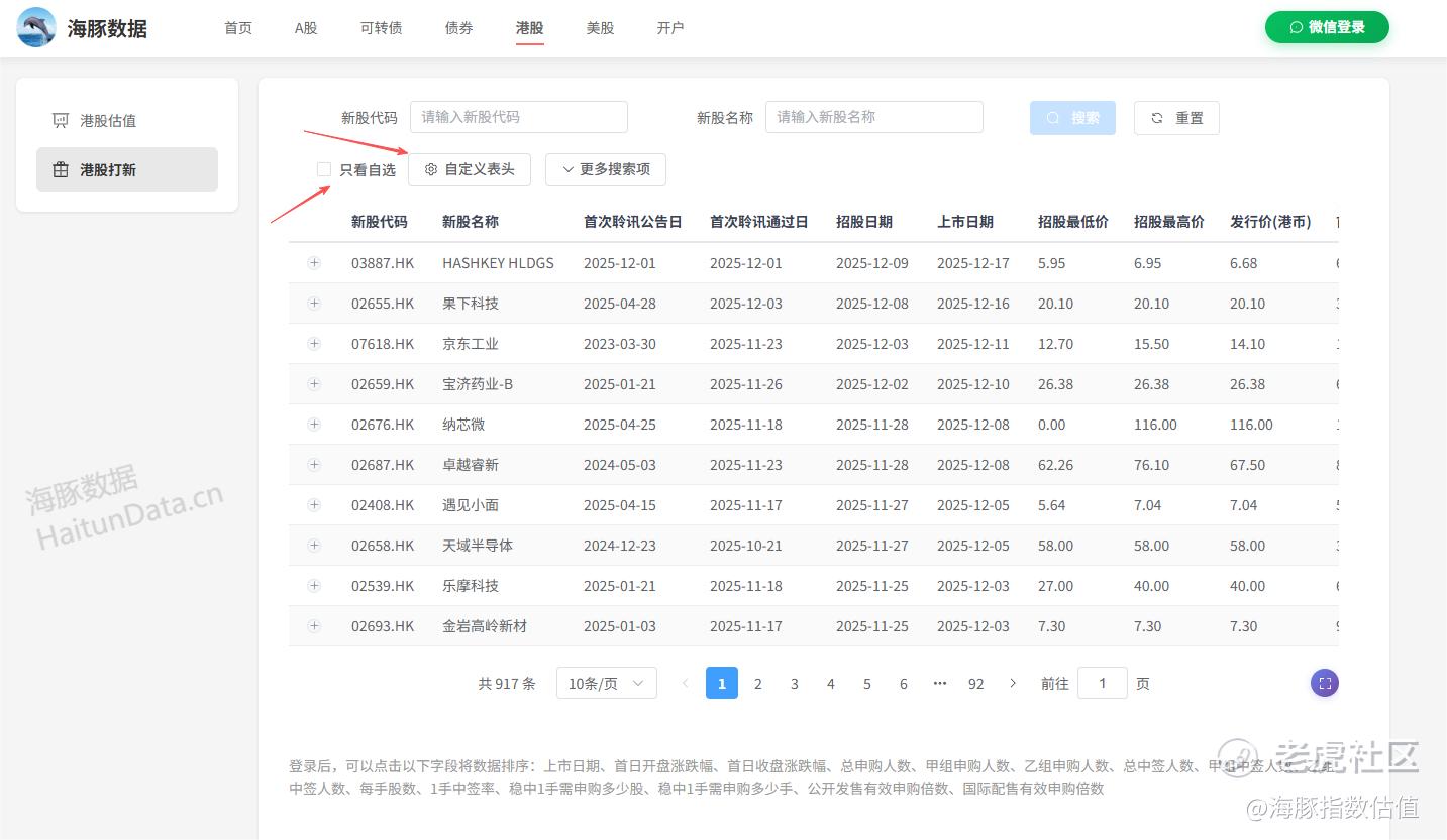 最近几天,在搞港股打新数据功能,添加自选和自定义表头,这两个功能今天搞差不多了,预计过两天就能跟大家伙见面了: