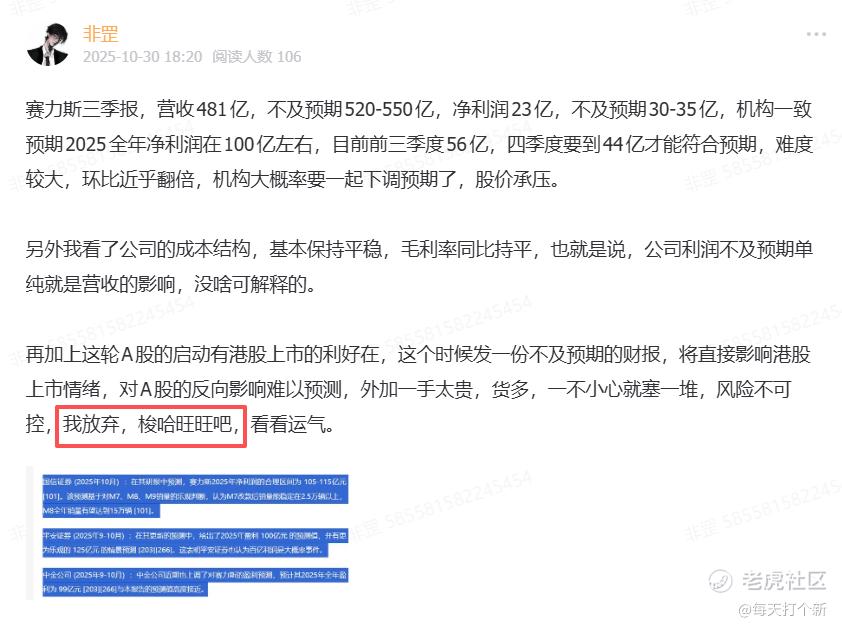 赛力斯是和均胜电子、旺山旺水一起上的,在网上狂吹赛力斯的时候,我们看完财报果断放弃,梭哈旺山旺水,成功避开这俩坑货。
