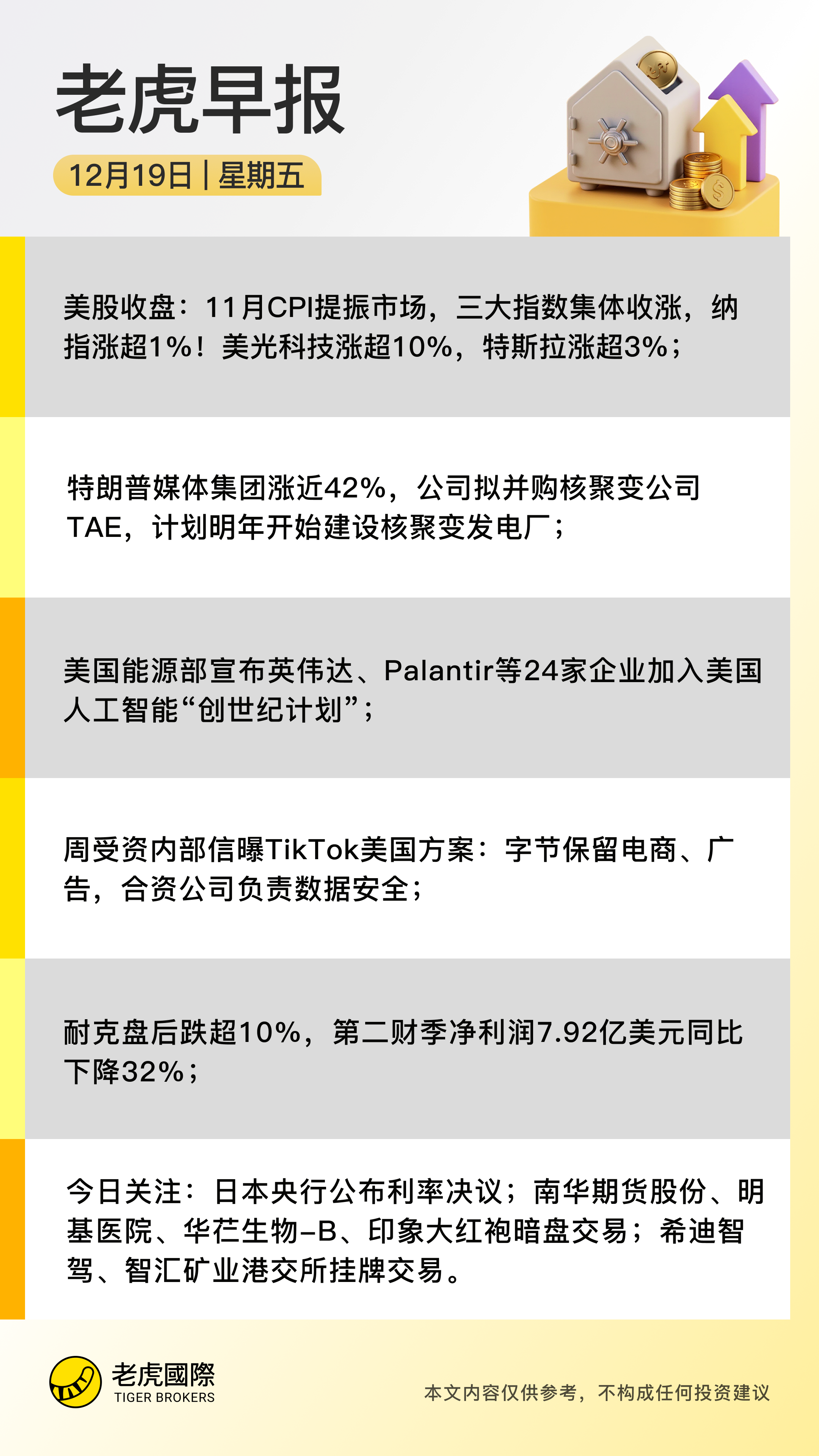 美股收盘|11月CPI提振市场,三大指数集体收涨,纳指涨超1%!美光科技涨超10%,特斯拉涨超3%