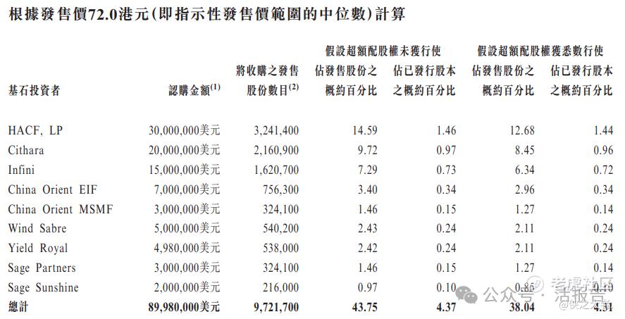 本次发行采用机制B分配,公开发售占10%,无强制回拨。国配部分引入9家基石投资者(包括高瓴资本、信庭投资、无极资本、东方国际资管、观博资本、Yield Royal Investment、锐智资本),合计认购约7亿港元,占全球发售股份的43.75%。
