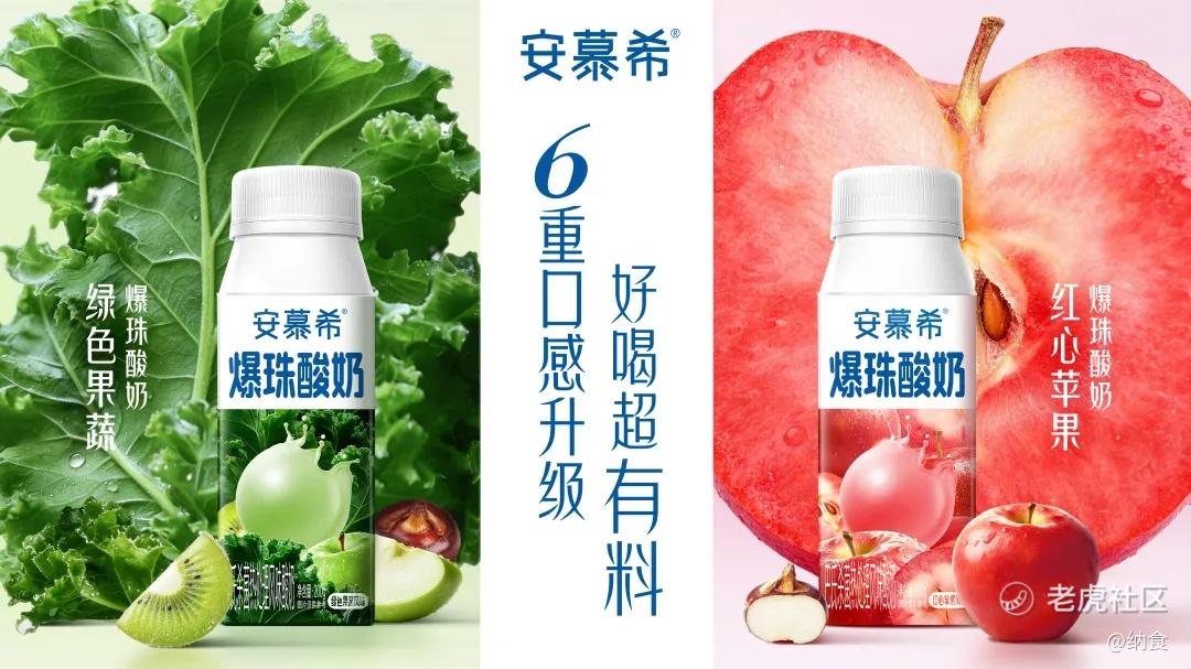 安慕希绿色果蔬和红心苹果益生菌爆珠酸奶则带来发酵技术的突破性升级,凭借6项技术专利背书的自研4层包埋技术,为BC99活性益生菌量身定制“保护壳”,实现“常温储存+活菌直达”的行业突破,同时精准契合年轻群体“趣味口感+健康轻食”的核心诉求,双爆珠、清爽水果颗粒和脆爽马蹄颗粒,搭配饱满燕麦和爽滑酸奶,带来丰富咀嚼感、饱腹感,6重口感层次与超级食材/核心产地水果的天然风味深度融合,无论是下午茶消遣还是轻食代餐场景都适配度拉满。特别是清洁配料表的加持,更好满足年轻消费者健康诉求。