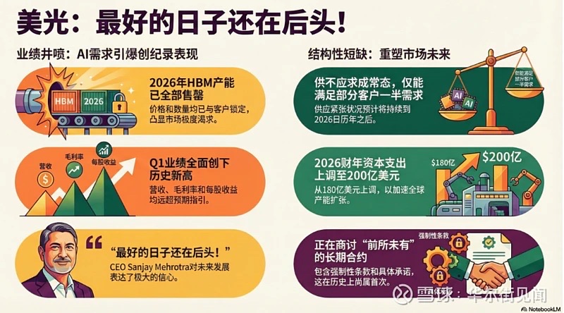 其实昨天到今天发生的事还是不少的。首先是美光财报,美光是英文名micron的音译,micron-微米,可能美光取名时,芯片制程还都在微米级,现在升级到纳米,但名字是不可能跟着改了。财报用一个字形容,夯。CEO称“the best is yet to come”,翻译成中文,就是“好日子还在后面”,为什么这话说的我虎躯一震...感觉不是什么好话😅前一天晚上说Owl放弃投资Oracle的密歇根数据中心,18日盘后Oracle也已经证实数据中心仍在按计划推动。