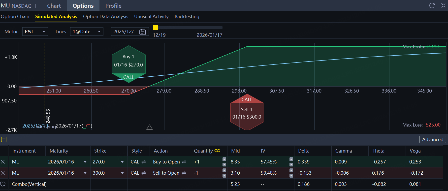 买入 MU 2026-01-16 $270 Call @ $8.35(基于大宗交易数据)