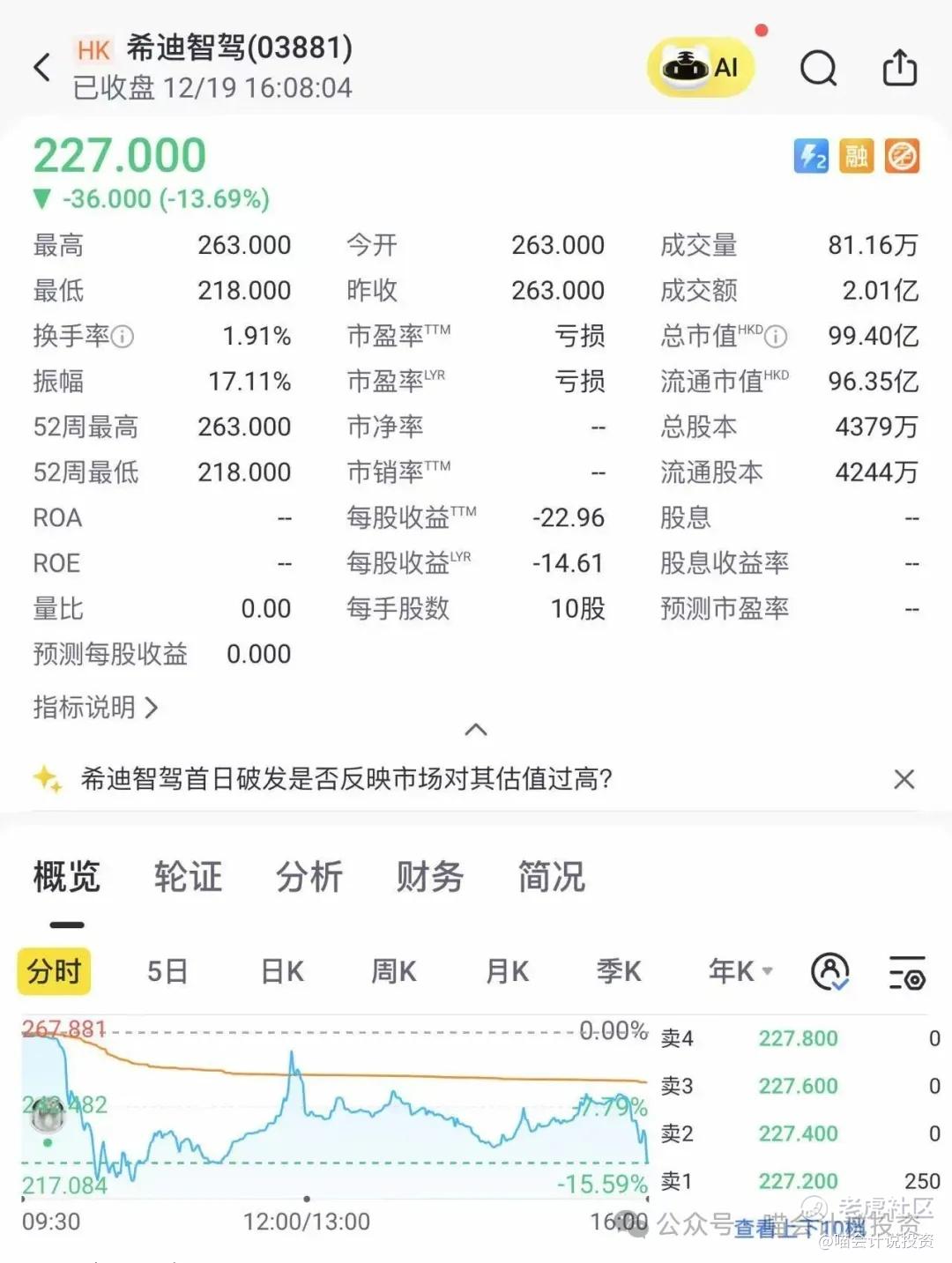 公开发售申购倍数和申购资金刷新了史低,比小马智行和文远知行都低。