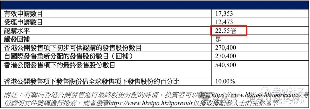香港公开发售22.55倍(这个倍数是按照5%来计算的,回拨到10%之后,需要除以2)/16亿,申购人数1.7万,冷冷清清。
