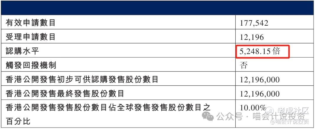 香港公开发售5248.15倍/2916亿,申购人数17.7万,猴子都在这票,喵老师早就预见到了。