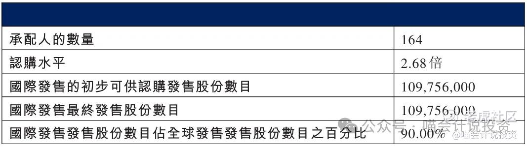 国际发售2.68倍,164名投资者,很多庄股,国配倍数未必高,因为货都被包掉了,别人也就不来了。