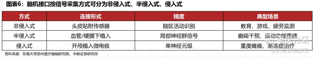 输入式则依靠接收外部刺激并将其转化为大脑内部的感知或认知,以增强或恢复用户的感官体验,通常用于恢复受损的感觉能力;双向交互式则结合了输出式和输入式的功能,进一步提高用户体验和控制精度。根据信号采集方式和技术,可分为侵入式、半侵入式、非侵入式。