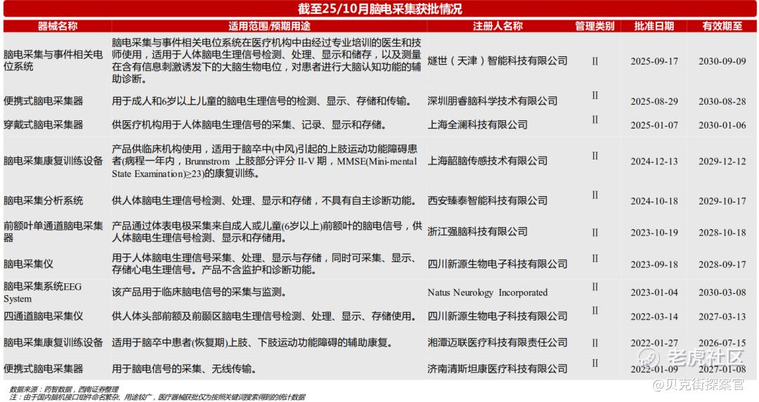 简单梳理后不难发现,中国脑机接口行业,几乎聚全国之力迅速追赶国际先进水平,并结合国情推动脑机接口器械迅速落地,未来伴随相关技术逐步成熟,该行业有望依托企业技术平台化、AI诊疗拓展、消费医疗延伸突破等实现多维发展,行业将从规模扩张转向更高层次的发展阶段,并从追赶者逐步成为行业规则制定者,脑机接口器械的发展情况,值得市场期待。