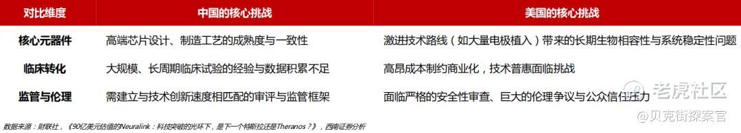 神经芯片与脑电采集设备方面,美国在系统级产品和芯片集成上暂时领先,中国则在特定场景和算法上表现优异;技术卡点方面,中美之间各有侧重,中国目前聚焦高端芯片的自主性与可靠性;美国则在技术激进与安全稳健间平衡。