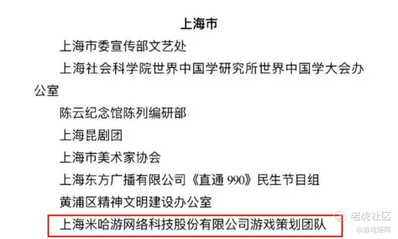 就在今年12月,国家广播电视总局发布公告,公示了全国宣传系统先进集体、先进个人拟表彰对象。其中,上海米哈游的游戏策划团队获得了今年的全国宣传系统先进集体荣誉,成为今年入选该名单的唯一游戏公司。而去年入选这一名单先进个人的是来自杭州游戏科学的冯骥。