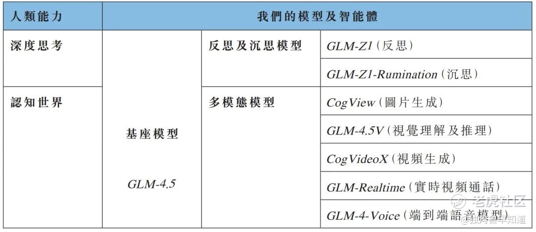 基座模型为预训练大语言模型,作为开发各种专业模型的基础。GLM-4.5为公司的旗舰基座模型,发布时即已开源。通过多阶段训练并结合微调与强化学习的全方位后训练,GLM-4.5在智能体、推理及编码任务上均展现出卓越性能。