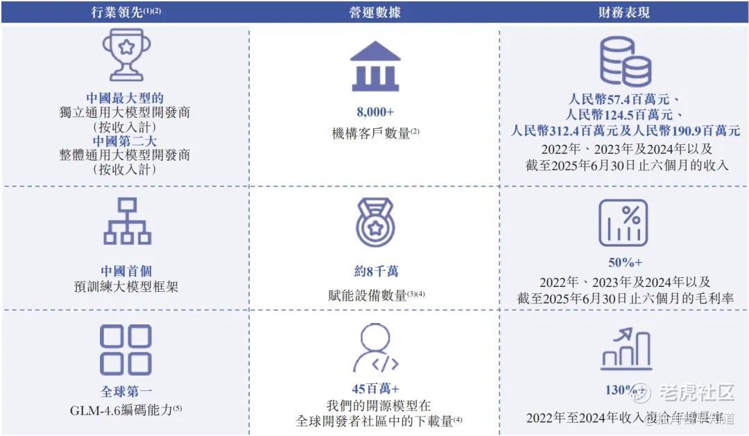 于往绩记录期,公司实现收入显著增长。于2022年、2023年及2024年,智谱的收入分别为5740万元(人民币,下同)、1.25亿元及3.12亿元,复合年增长率为130%以上。截至2024年及2025年6月30日止六个月,公司的收入分别为4490万元及1.91亿元。
