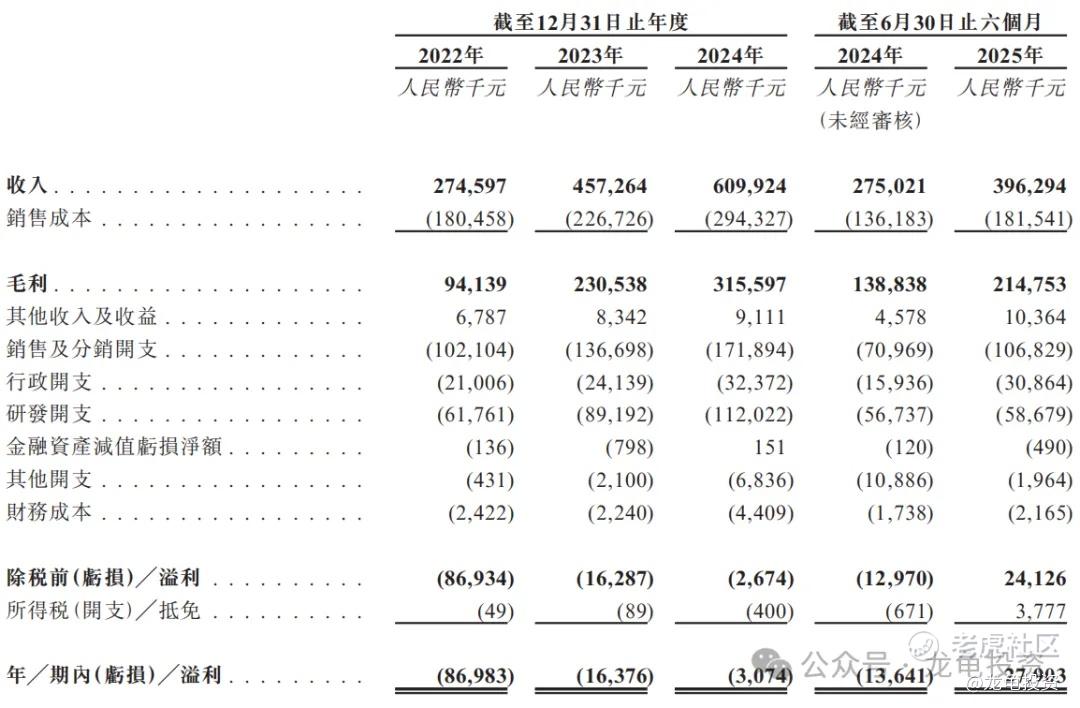 毛利:2022年毛利9413.9万人民币,2023年毛利2.31亿人民币,2024年毛利3.16亿人民币;截至2025年6月30日止最近12个月毛利3.92亿人民币。