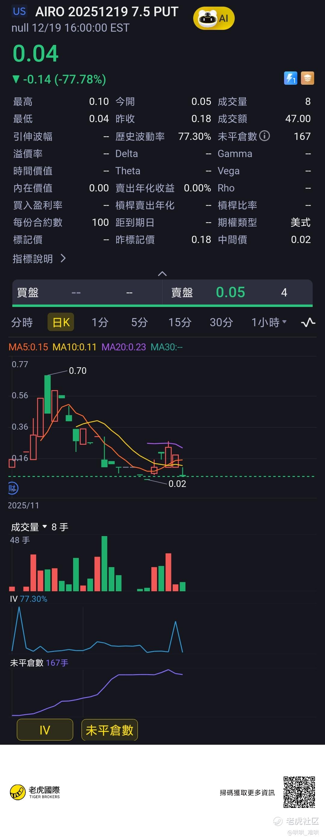 {"i18n":{"language":"zh_CN"},"detailType":1,"isChannel":false,"data":{"magic":2,"id":512762488480648,"tweetId":"512762488480648","gmtCreate":1766213192808,"gmtModify":1766213195399,"author":{"id":3573338047268111,"idStr":"3573338047268111","authorId":3573338047268111,"authorIdStr":"3573338047268111","name":"哄哄_难哄","avatar":"https://static.tigerbbs.com/72381a89bbd537a69b68b7e20569882e","vip":1,"userType":1,"introduction":"","boolIsFan":false,"boolIsHead":false,"crmLevel":5,"crmLevelSwitch":0,"currentWearingBadge":{"badgeId":"518b5610c3e8410da5cfad115e4b0f5a-1","templateUuid":"518b5610c3e8410da5cfad115e4b0f5a","name":"实盘交易者","description":"完成一笔实盘交易","bigImgUrl":"https://static.tigerbbs.com/2e08a1cc2087a1de93402c2c290fa65b","smallImgUrl":"https://static.tigerbbs.com/4504a6397ce1137932d56e5f4ce27166","grayImgUrl":"https://static.tigerbbs.com/4b22c79415b4cd6e3d8ebc4a0fa32604","redirectLinkEnabled":0,"hasAllocated":1,"isWearing":1,"stampPosition":0,"hasStamp":0,"allocationCount":1,"allocatedDate":"2025.03.28","individualDisplayEnabled":0},"individualDisplayBadges":[],"fanSize":3,"starInvestorFlag":true,"fullDisclosureFlag":false,"starInvestorFollowerNum":1,"starInvestorOrderShareNum":7,"userFollowInvestorFlag":false,"orderNotificationFlag":false,"showRor":false,"investmentPhilosophy":"鑫鱻础芏,股市祇祷","winRationPercentage":48.623853,"tradeVolumeEst":0},"themes":[],"images":[{"img":"https://static.tigerbbs.com/fe8fef0b31e5bfd6ec15676f6d6a64ca","width":"1080","height":"2786"}],"coverImages":[{"img":"https://static.tigerbbs.com/fe8fef0b31e5bfd6ec15676f6d6a64ca","width":"1080","height":"2786"}],"title":"","html":"<html><head></head><body><p><a href=\"https://laohu8.com/OPT/AIRO 20251219 7.5 PUT\">$AIRO 20251219 7.5 PUT$ </a> 末日期权到期</p><img src=\"https://static.tigerbbs.com/fe8fef0b31e5bfd6ec15676f6d6a64ca\" tg-width=\"1080\" tg-height=\"2786\"></body></html>","htmlText":"<html><head></head><body><p><a href=\"https://laohu8.com/OPT/AIRO 20251219 7.5 PUT\">$AIRO 20251219 7.5 PUT$ </a> 末日期权到期</p><img src=\"https://static.tigerbbs.com/fe8fef0b31e5bfd6ec15676f6d6a64ca\" tg-width=\"1080\" tg-height=\"2786\"></body></html>","text":"$AIRO 20251219 7.5 PUT$ 末日期权到期","highlighted":1,"essential":1,"paper":1,"likeSize":1,"commentSize":0,"repostSize":0,"favoriteSize":0,"link":"https://laohu8.com/post/512762488480648","repostId":0,"isVote":1,"tweetType":1,"viewCount":154,"commentLimit":10,"likeStatus":false,"favoriteStatus":false,"reportStatus":false,"symbols":["AIRO"],"verified":2,"subType":0,"readableState":1,"langContent":"CN","currentLanguage":"CN","warmUpFlag":false,"orderFlag":false,"shareable":true,"causeOfNotShareable":"","featuresForAnalytics":[],"commentAndTweetFlag":false,"andRepostAutoSelectedFlag":false,"upFlag":false,"length":32,"optionInvolvedFlag":true,"xxTargetLangEnum":"ZH_CN"},"commentList":[],"isCommentEnd":true,"isTiger":false,"isWeiXinMini":false,"url":"/m/post/512762488480648"}