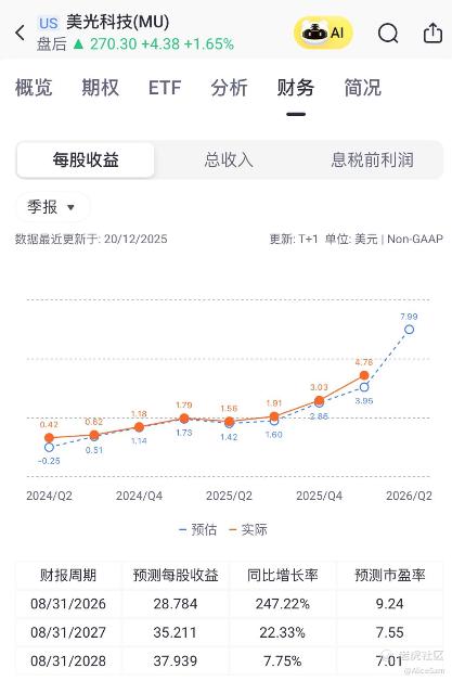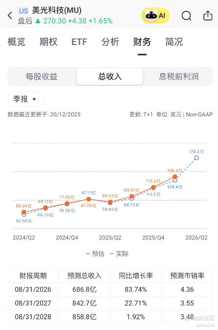 得了闲,来学习一下,今天读一读 $美光科技(MU)$ 的财报,因为这只股票一路飞升的这个猛劲儿,太引人注目了。