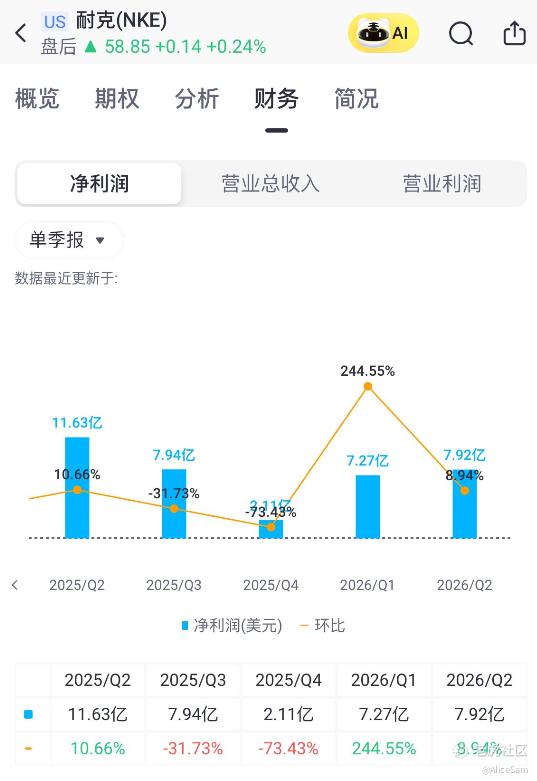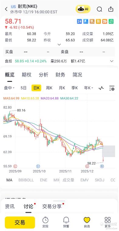 话说, $耐克(NKE)$ 这几个月的股价,也是在跌跌不休。特别是刚刚过去的这周,他们的财报发布之后,股价就像打了股折价,直接来了一个大跳水。这个必须要好好去八卦一下,看看Nike这次的财报,是不是真的这么不堪。[暗中观察]
