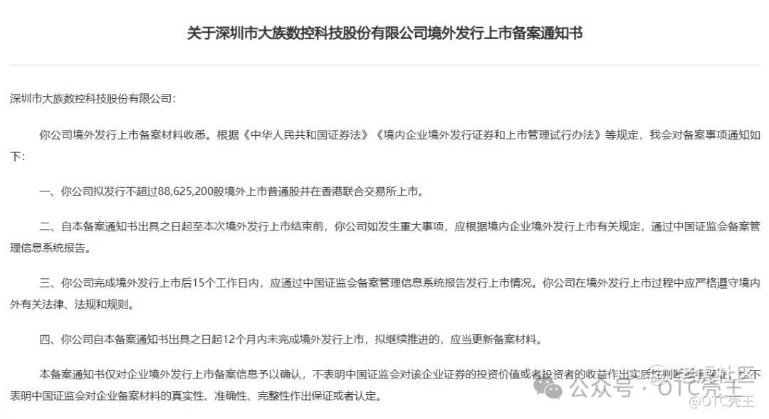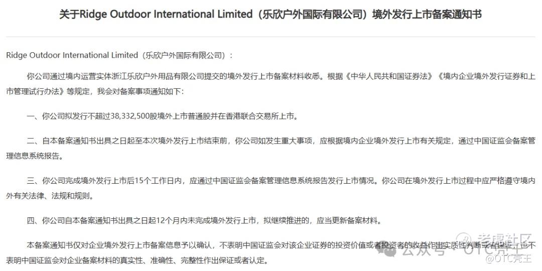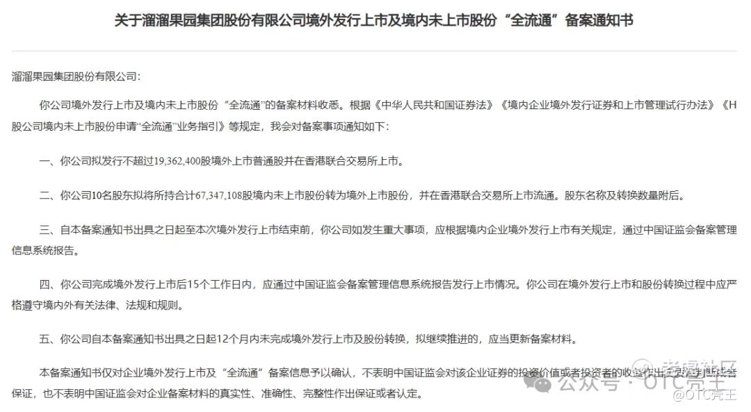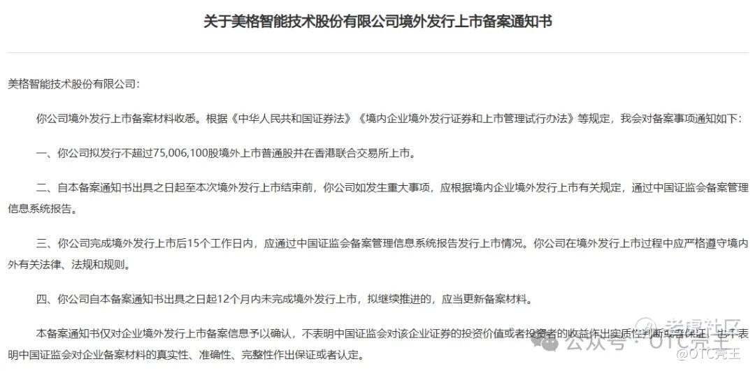 本备案通知书仅对企业境外发行上市及“全流通”备案信息予以确认,不表明中国证监会对该企业证券的投资价值或者投资者的收益作出实质性判断或者保证,也不表明中国证监会对企业备案材料的真实性、准确性、完整性作出保证或者认定。