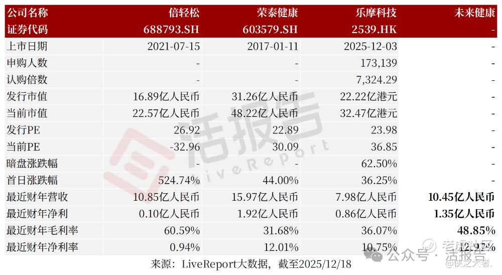 同行业IPO可比公司:倍轻松、奥佳华、乐摩科技