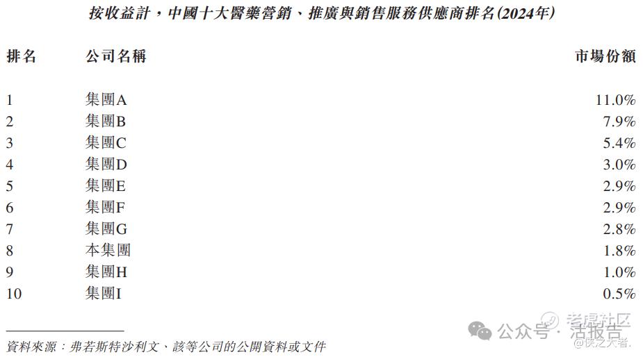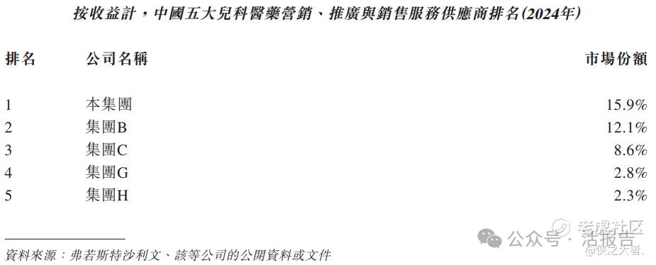 根据弗若斯特沙利文的资料,按2024年的收益计,公司在中国医药营销、推广与销售市场排名前十,且是中国最大的儿科医药营销、推广与销售服务供货商,约**国市场15.9%的显着份额。