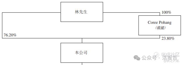 公司创始人、控股股东林钟润先生直接持股76.2%,并通过Coree Pohang持股23.8%,林钟润亦是北京韩美的董事及董事长、韩美集团执行董事及股东、Dx&Vx(180400.KS)非执行董事及股东。