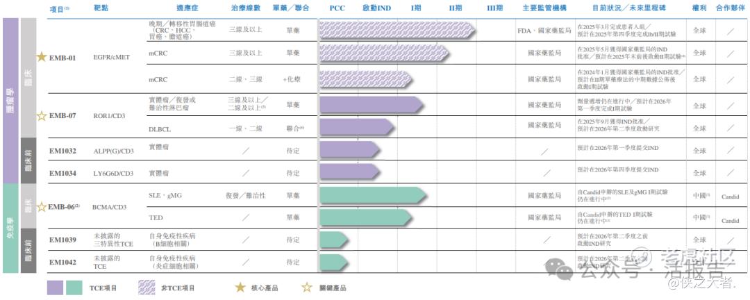 (i)核心产品EMB-01(靶向EGFR/cMET),用于治疗结直肠癌;