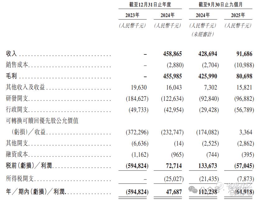 收入分别约为人民币0.00亿、4.59亿、4.29亿、0.92亿,2025年前9月同比-78.61%;