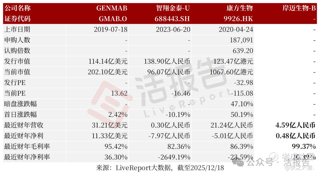 同行业IPO可比公司:GENMAB、智翔金泰-U、康方生物