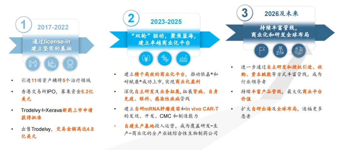 聚焦当下,云顶新耀正迈入全面爆发的第三阶段。在此阶段,公司将通过自主研发、授权引进、资本并购等多元方式持续丰富管线储备,逐步构建高价值产品组合,稳步向全球领先的综合性生物制药企业目标迈进。