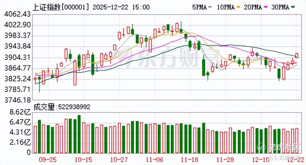 12月22日,A股三大指数集体走强。截止收盘,沪指涨0.69%,深证成指涨1.47%,创业板指涨2.23%。沪深两市成交额达到18619亿,较上一交易日放量1360亿。