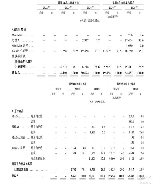 目前,MiniMax的收入主要来自AI原生产品、开放平台及其他基于AI的企业服务。
