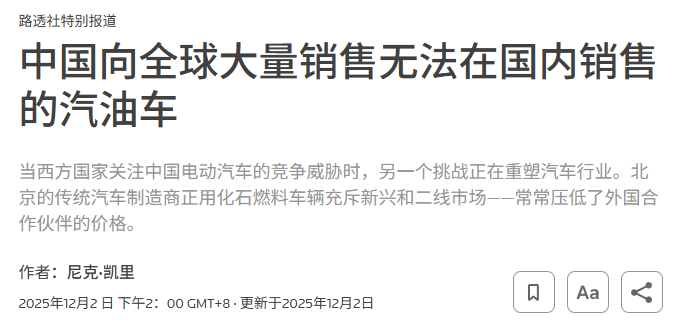 这些在国内堪称“夕阳产品”的燃油车,出海竟成了顶流,根本原因是找到了“天然避风港”。