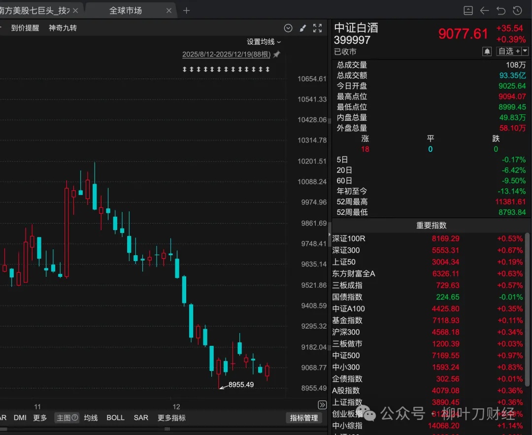 1)中证白酒的估值虽然很低,但显然还需要时间来企稳。