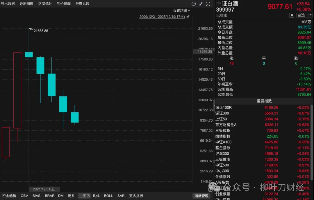 而且年线看,白酒跌了5年了。