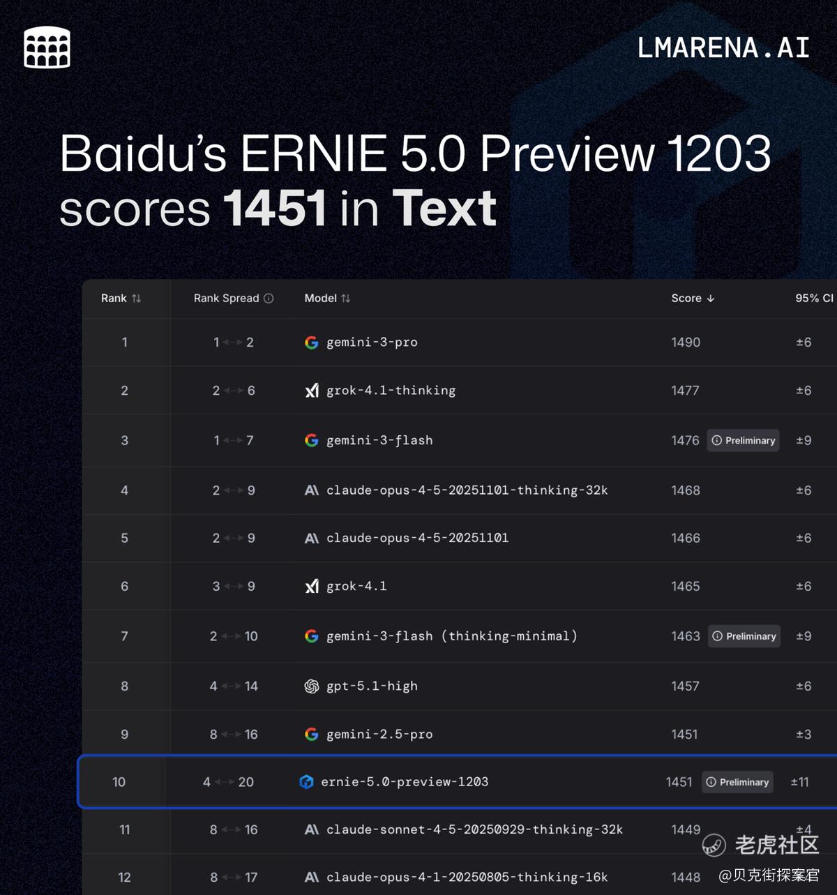 国内第一!文心大模型5.0 Preview再登LMArena文本榜,超GPT-5.2
