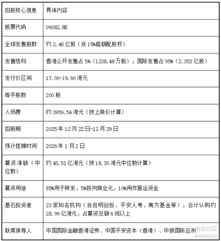 接着是大家最关心的招股信息,这直接关系到打新的成本和参与门槛。整理了最新招股书中的核心信息,做成表格方便大家快速查阅: